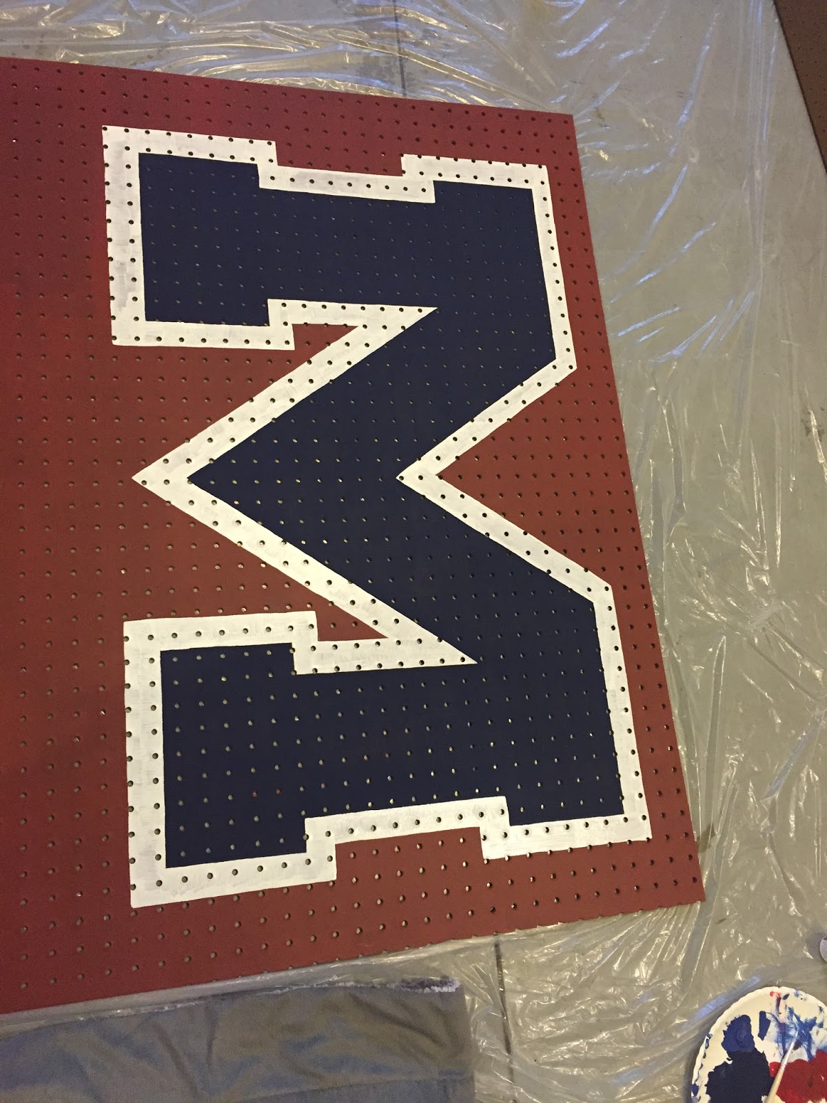 of course, before the pieces got to oxford, there were some fun work-in-progress pics i took along the way that i thought i’d share! i’d like to give a big shoutout to lowe’s in dekalb for being so awesome (and not staring at me while i was buying pegboard sheets in heels during a lunch hour….see pic below!), and to my dear friend (you know who you are) for asking me to make something so cool, and trusting me with this project!