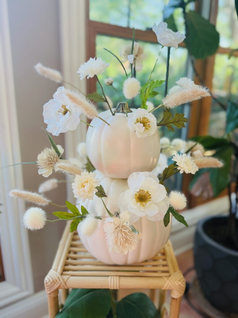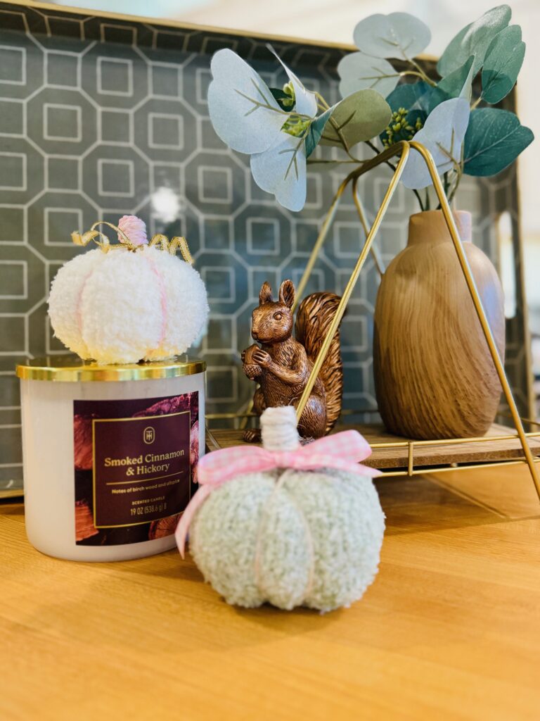 once i’ve figured out these two biggest elements of the celebration, i am always on board with doing some adorable DIYs for the decor! {obvi…i mean, come on, it’s *me*.} for this year’s homecoming, i’ve got two main DIYs in my plans: my fuzzy sock pumpkins + an adorable pumpkin centerpiece, inspired by this idea shared by martha stewart.