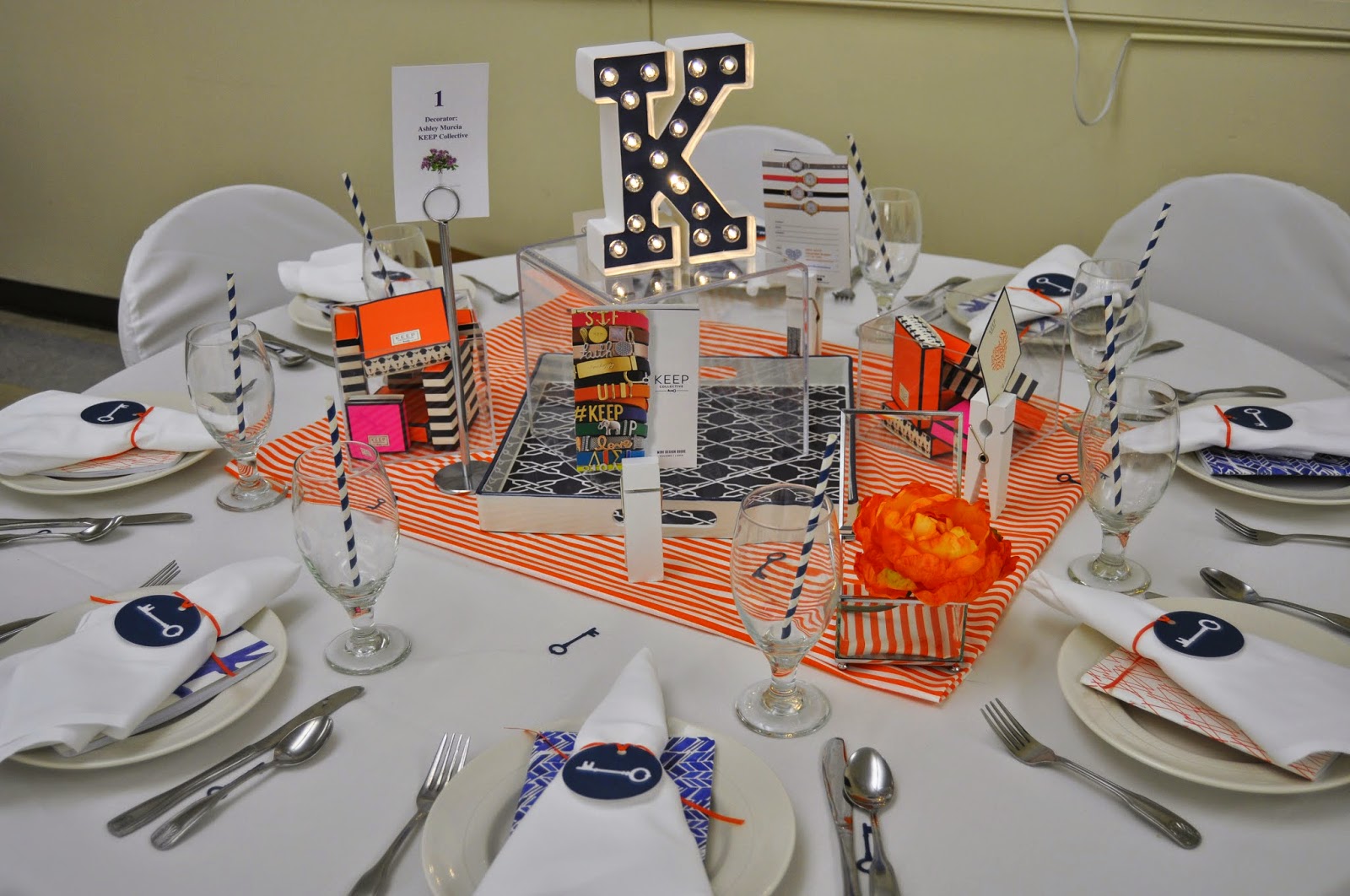 and, i also have to share my KEEP table because it had a totally different look! KEEP is a totally new company (a sister company of stella & dot!), and i love doing a modern, bright palette with acrylic touches look to represent KEEP! plus, it totally gave me an excuse to get one of the heidi swapp marquee letters at michaels and whip it up for my table centerpiece!