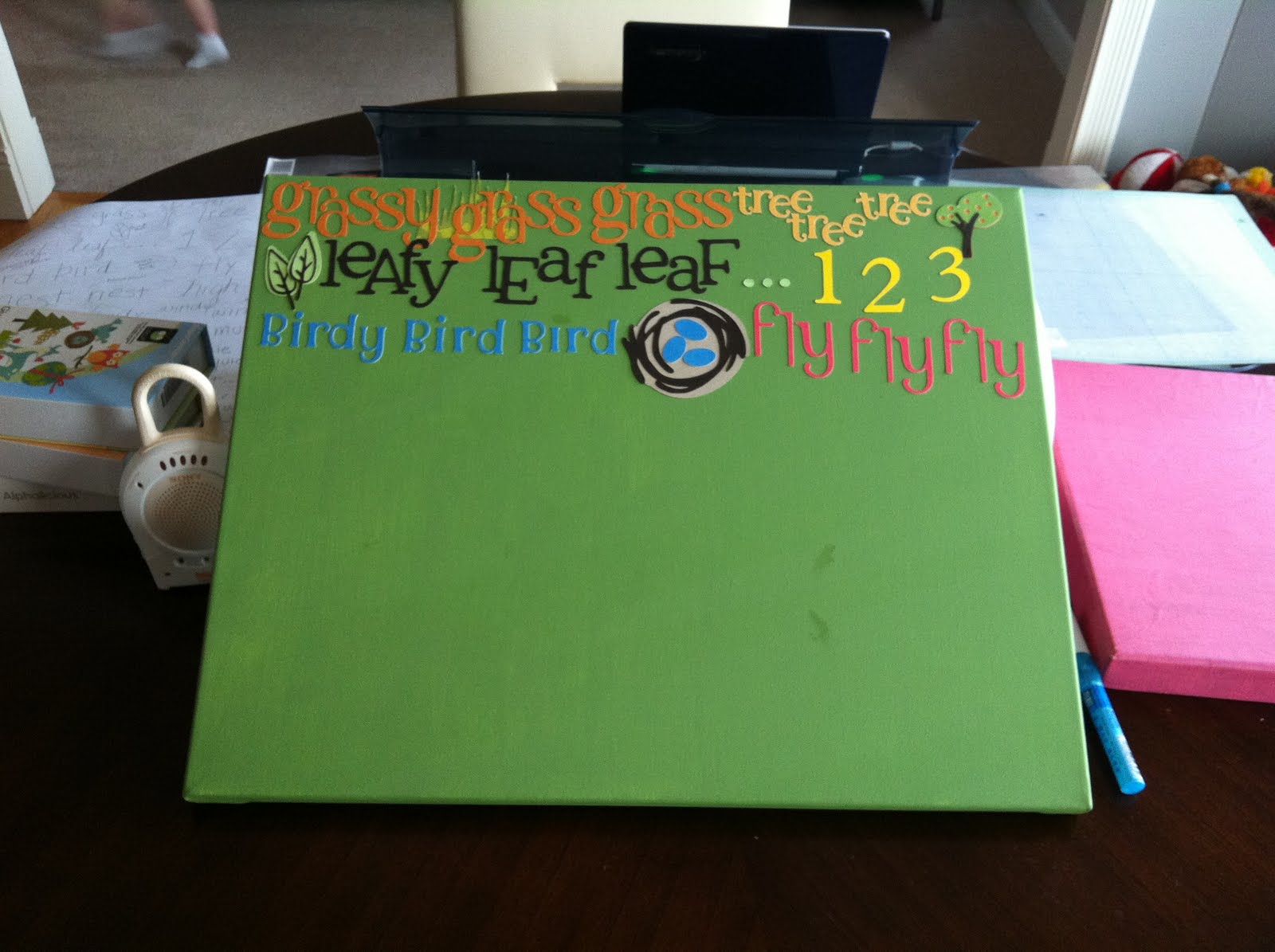 i’m still really loving how this is coming along. i even went so far as to take it into our little guy’s room tonight to see where it’s permanent home will be. (and, you might have noticed there are a couple of glue spots on my canvas. this was the result of not using the tweezers to place my letters, and dropping one, glue-side down, on the canvas. eek!)