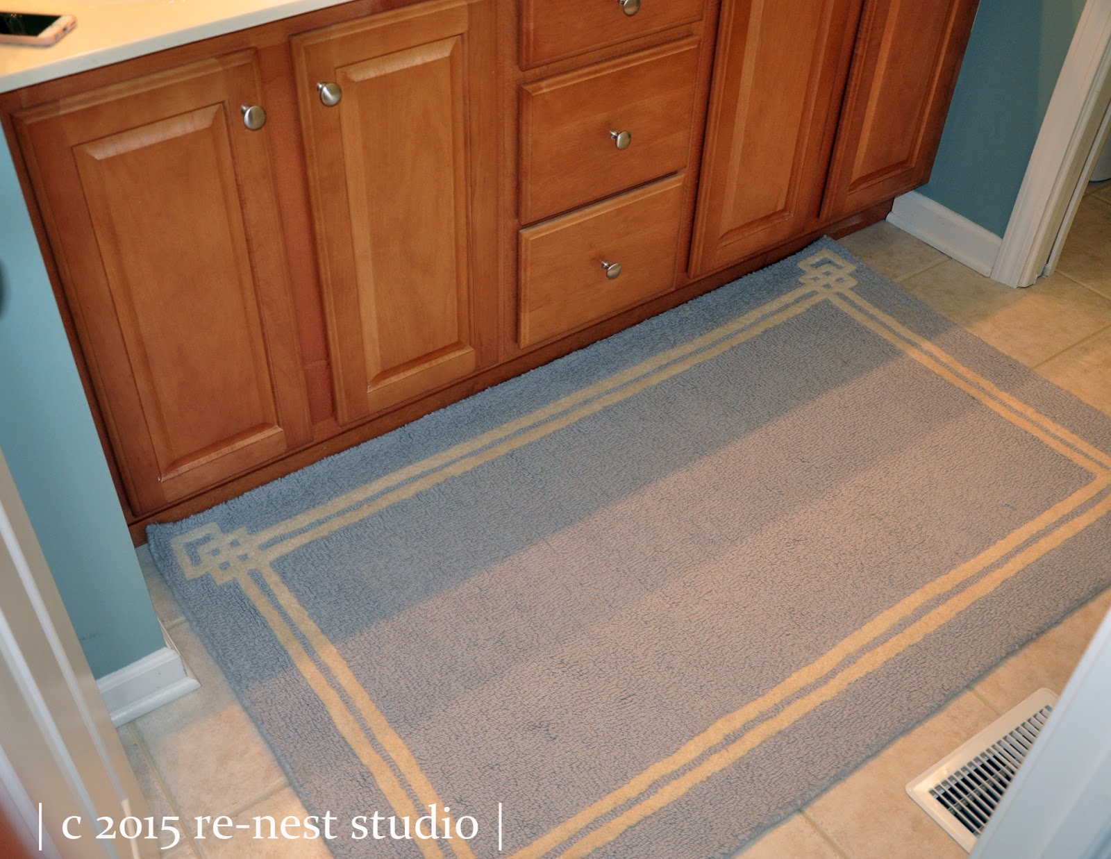 i was walking through the bathroom, after hanging up my adorable new whale string art, and the color of that adorable little whale struck me. and then i remembered that rug. and then i unearthed it from it’s plastic bag, and wouldn’t you know it…it fits perfectly in the bathroom. no joke! something i was going to part with now has a new, lovely place in our nest!