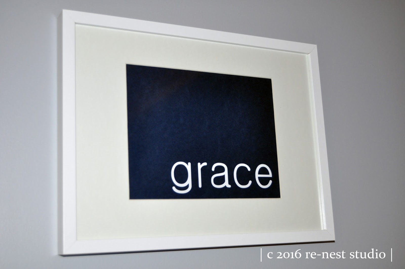 | my new desk artwork. a little daily reminder to keep the grace. special thanks to my friend katie for her courage to share her journey with grace + the inspiration. |