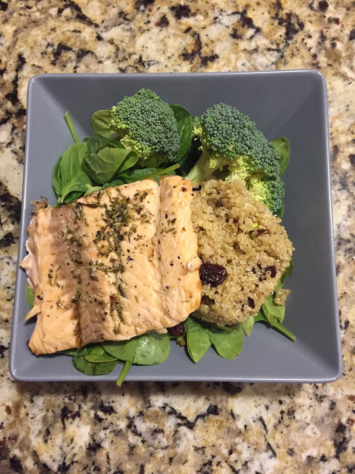 last night, i had some salmon that needed to be cooked, and i had decided to pair it with a dried cherry and pistachio quinoa. (disclaimer: i love quinoa. like, love it. my family? not so much.) i checked out my trusty favorite clean eating recipe source, skinnytaste, for an idea for seasoning the salmon….and i quickly found this great idea which i also happened to have the ingredients for in my pantry! the salmon was on the grill and getting ready in no time!