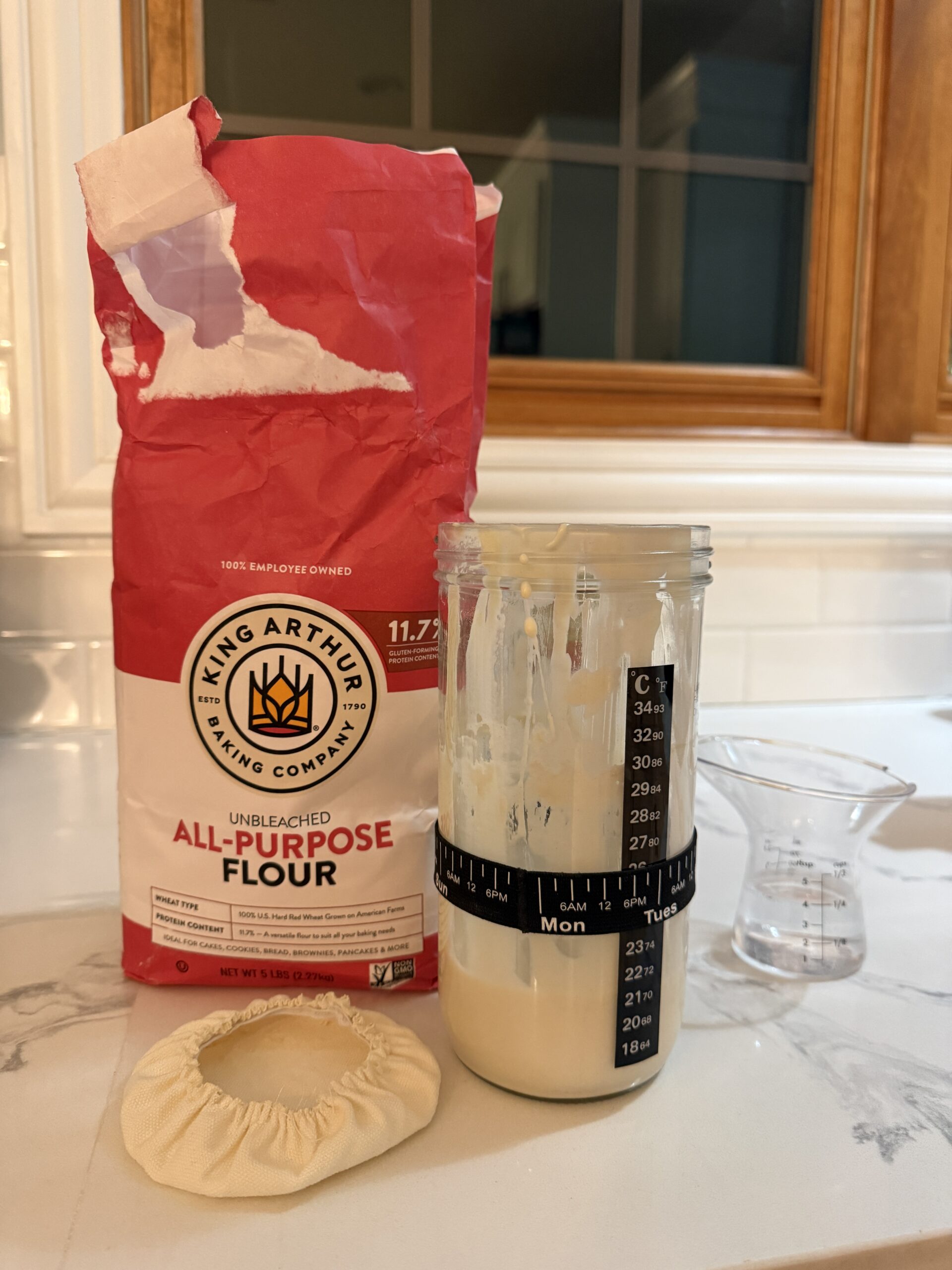 i wish i could recommend the kit the boys got me…i’m fairly certain it came from amazon, but not exactly sure. i have loved using my tried-and-true king arthur flour to feed marjorie (this is the only flour i use for anything!) and, now we just keep feeding and waiting and hopefully i can maybe venture into making my first loaf next week!
