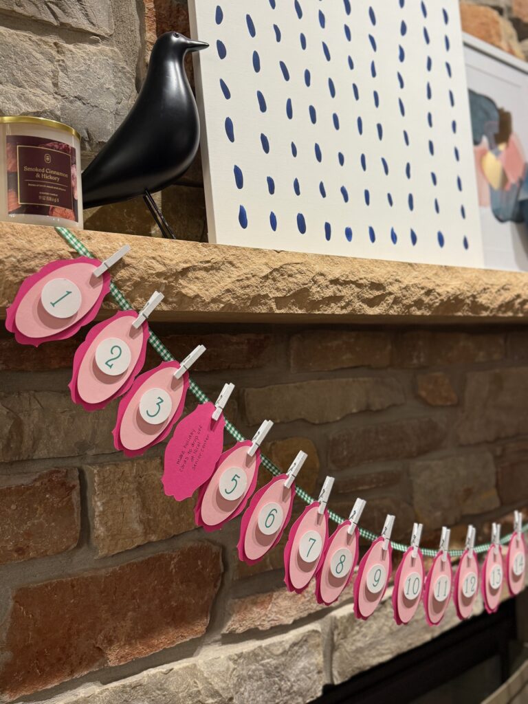 this year is no different with a new design with my DIY kindness advent calendar. i’ve loved my traditional buffalo check version (which is still available!), but wanted to create a version that used a more modern, popular color palette that i keep seeing when out checking out holiday decor. i love all things bright + bold, so this year’s new DIY kindness advent calendar is my faves: pink, more pink + green!