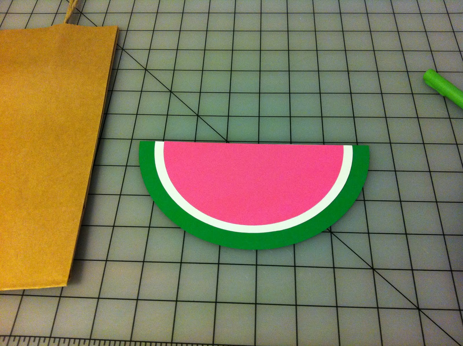 of course, watermelon isn’t complete without some seeds, and it just so happened that i was able to cut out some black leafs from my cricut give a hoot cartridge, that with a little trimming, gave perfect watermelon seeds.