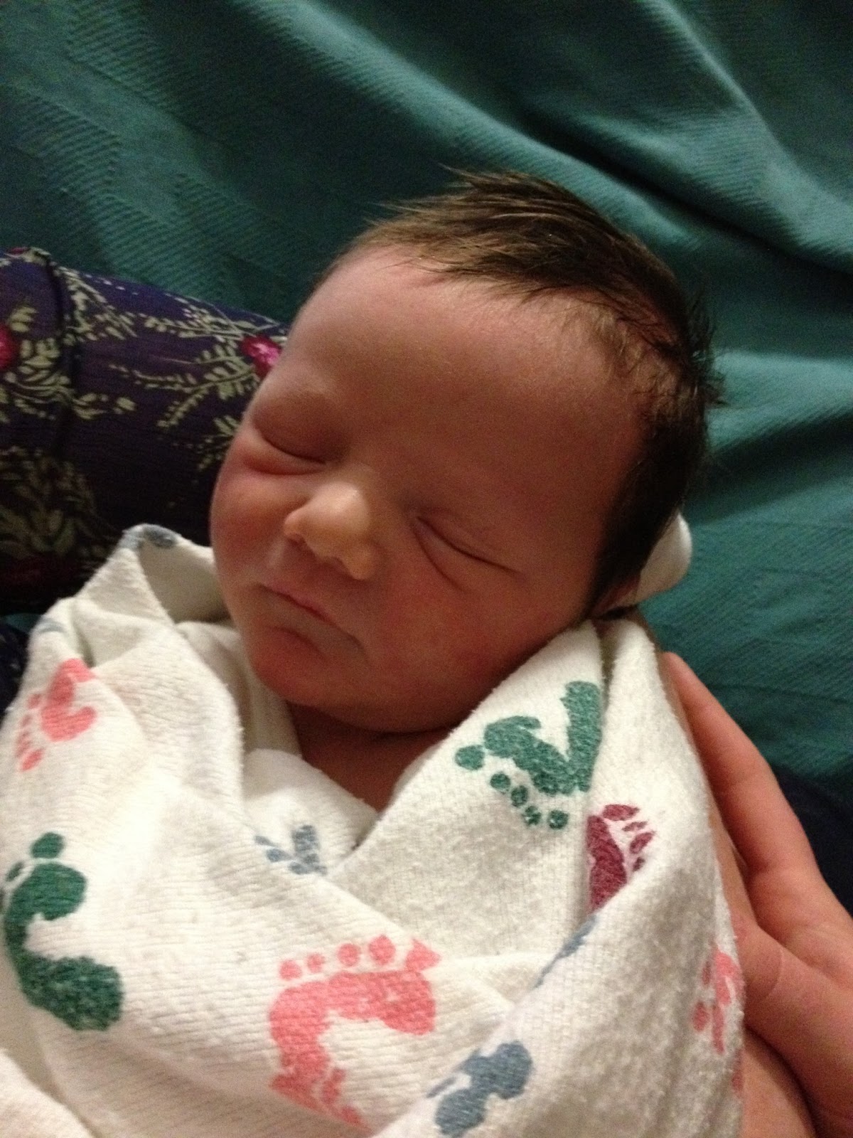 fast forward about two hours and we are at the hospital, getting checked in and confirming that what happened was really what i thought had happened. we were admitted and i knew this time ’round i wasn’t just going to stay in bed and wait for something to happen…i had been walking throughout the pregnancy and since the labor and delivery floor was a giant circle, mr. re-nest and i started doing laps….so much so that we had nurses cheering us on. after about fifty laps, i decided i needed to relax, so enter in the lovely anesthesiologist and the joyous epidural. then, a mere five hours and forty-one minutes later, our little man was here.